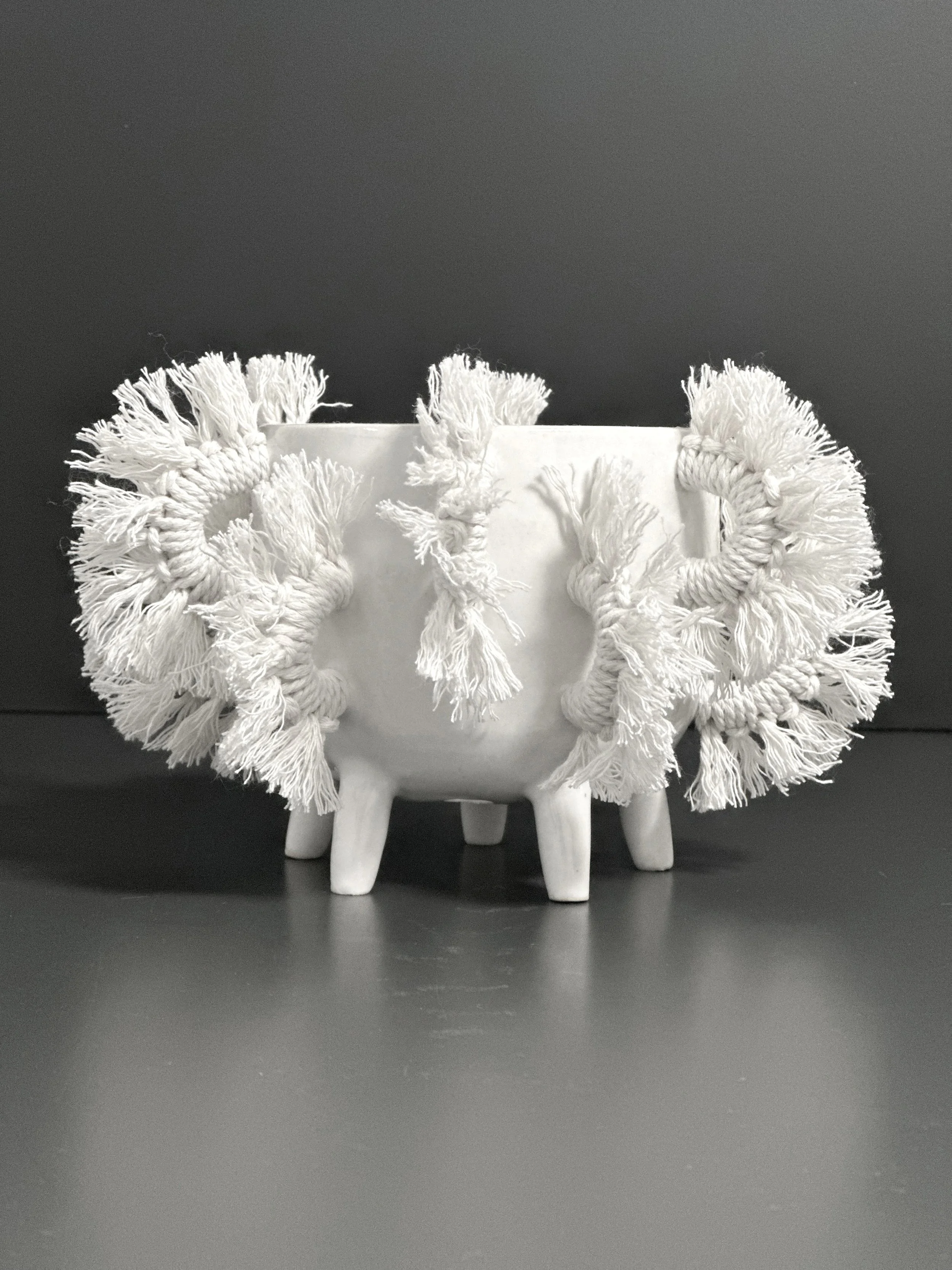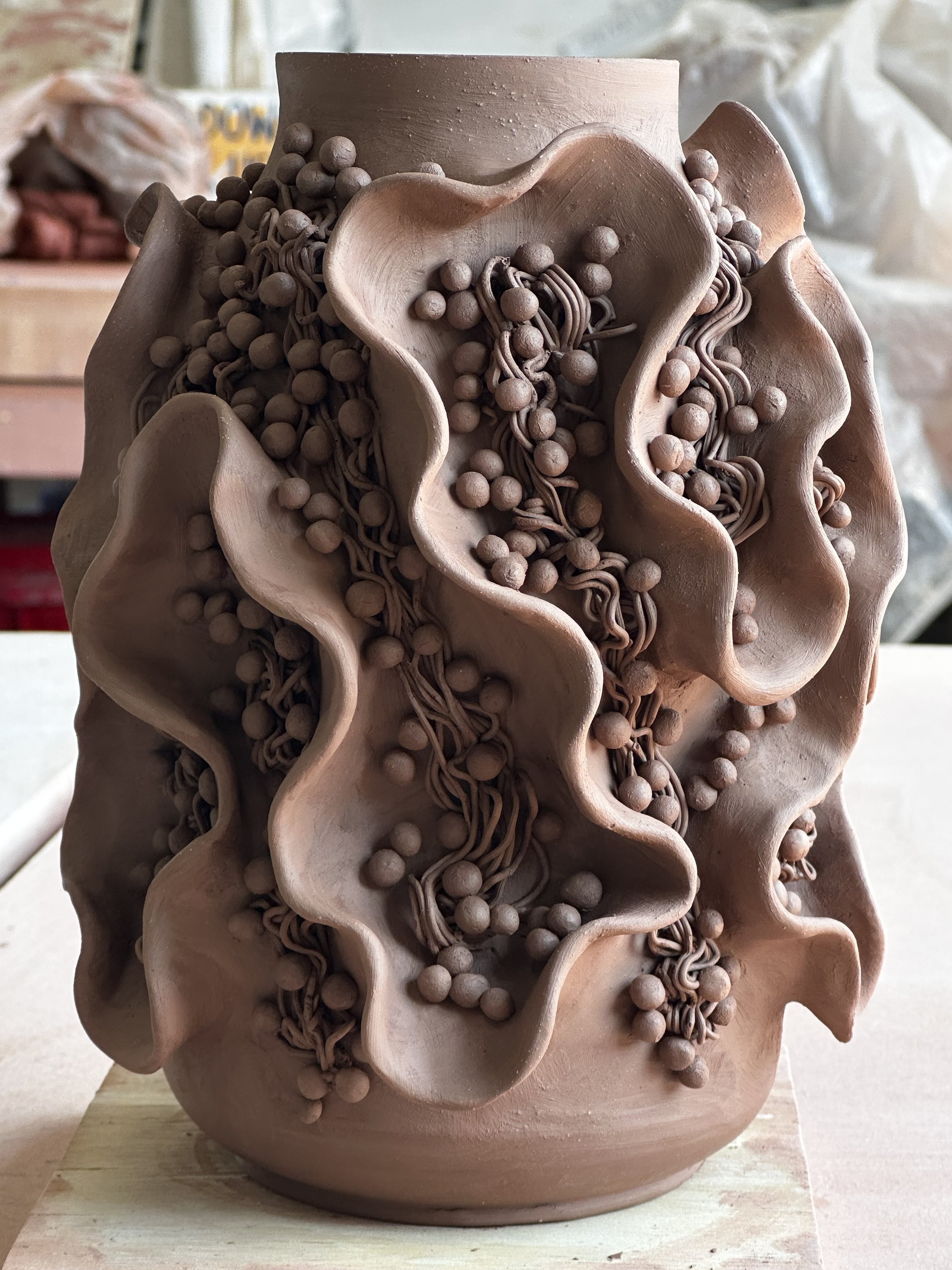 Today, my work brings those two worlds together. I throw and hand-build ceramic vessels and sculptural planters that explore texture, construction, and the balance between softness and strength. These are functional objects made to live with, pieces that bring beauty into the everyday.
